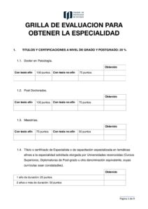 Grilla de evaluación para obtener la especialidad