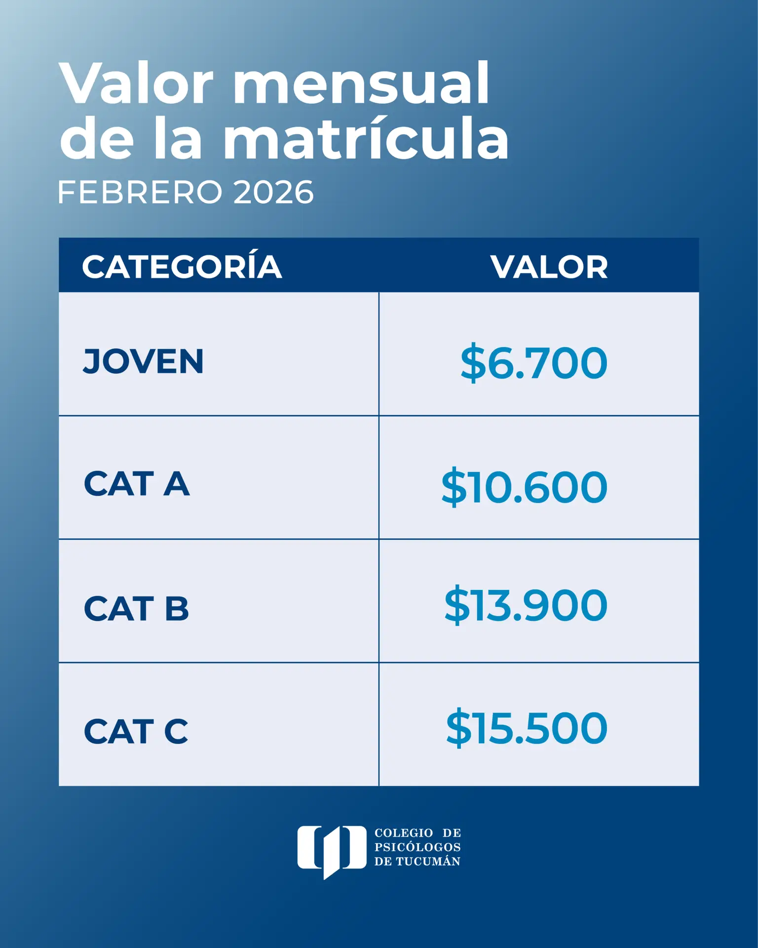 Acordamos los valores de la Matrícula + SIT de Febrero 2026