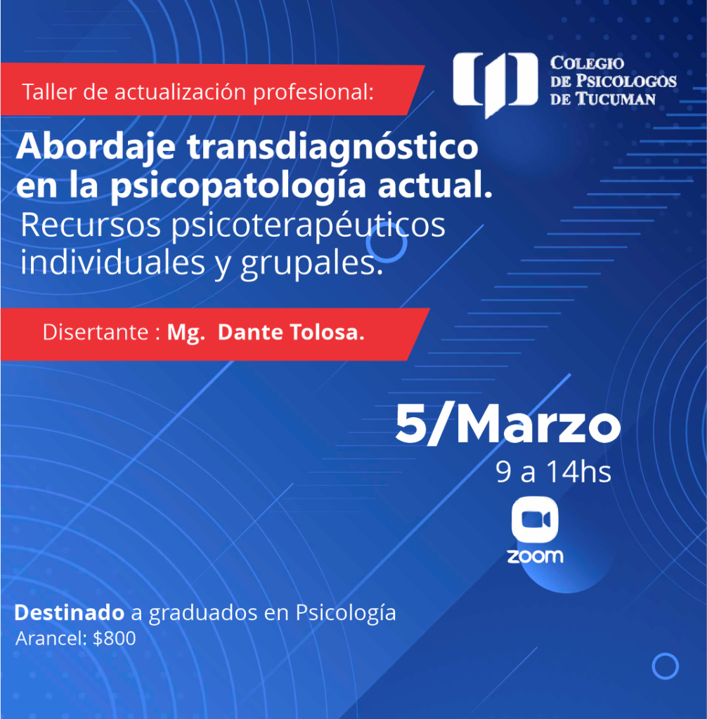 Taller de actualización profesional: Abordaje transdiagnóstico en la psicopatología actual. Recursos psicoterapéuticos individuales y grupales.