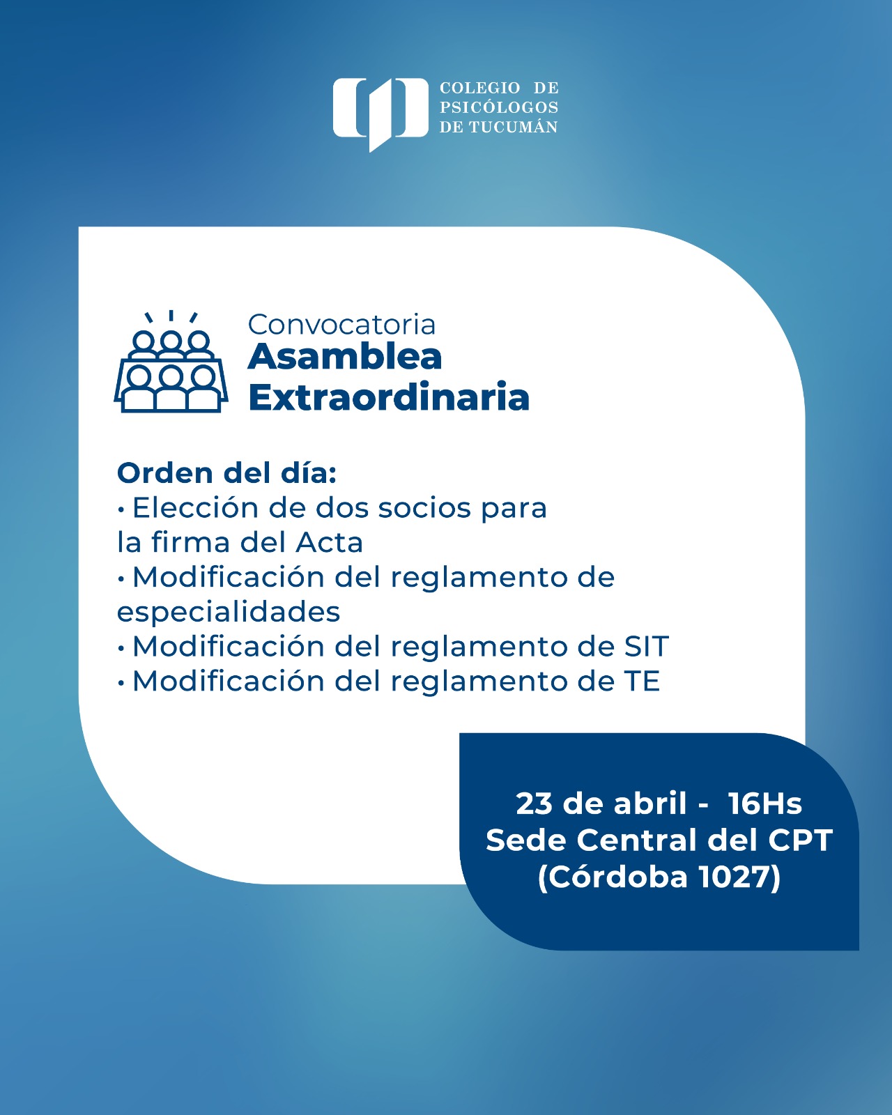 Lugar: Colegio de Psicólogos de Tucumán (Córdoba 1027).