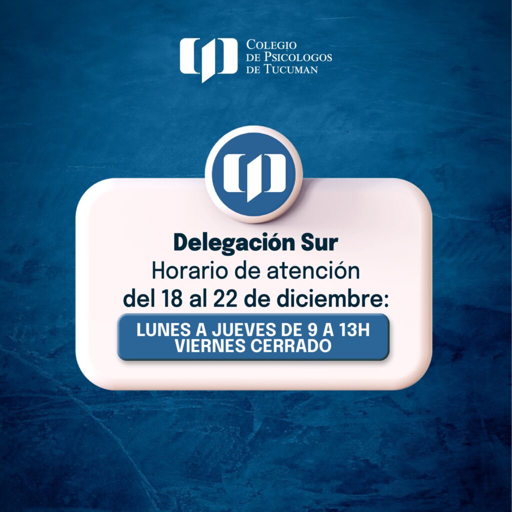Atención al Público en Delegación Sur Dic 20, 2023 | Noticias En la semana del 18 al 22 de diciembre la Delegación atenderá al público en los siguientes horarios:Lunes a Jueves de 9 a 13hs.Viernes 22: cerrado.