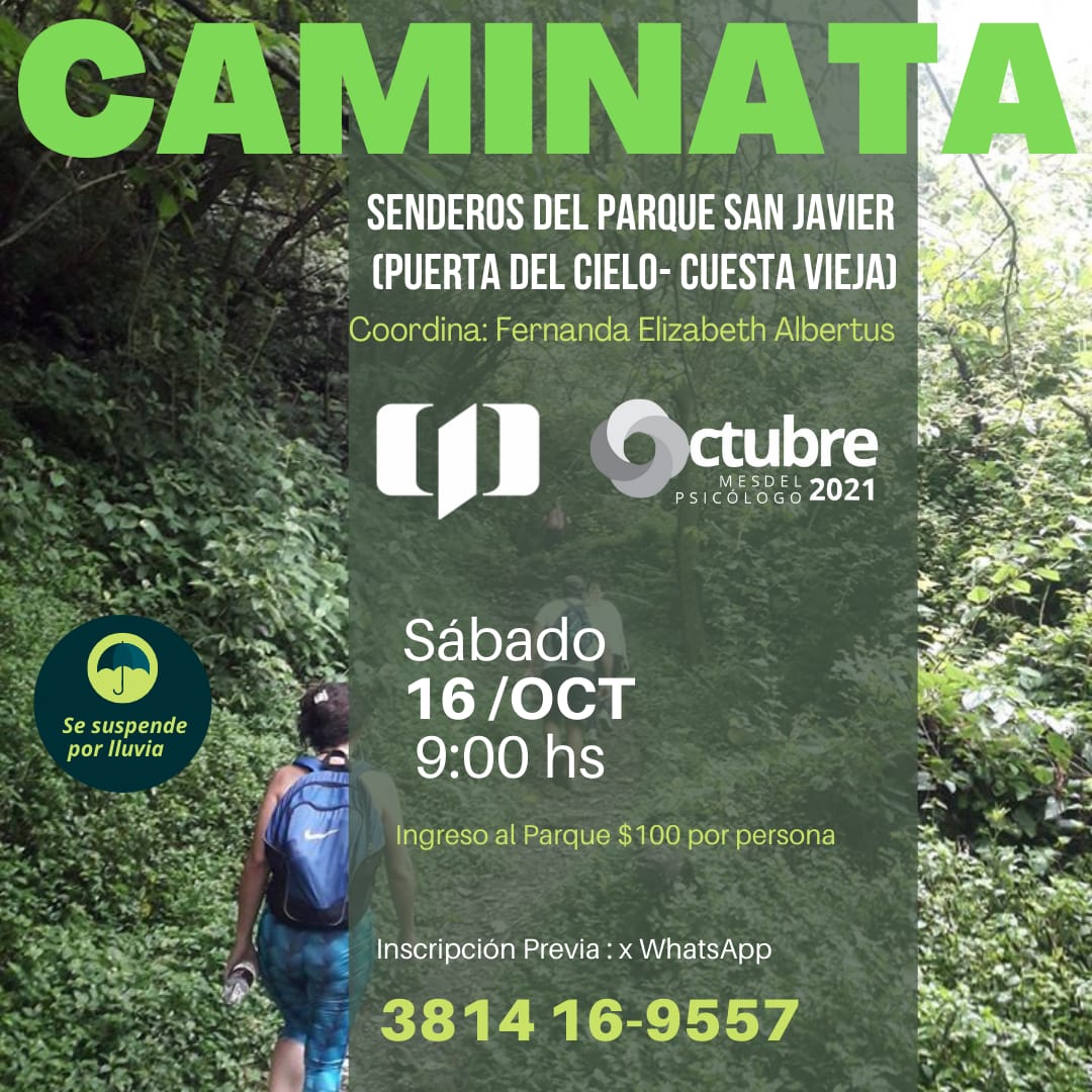 Caminata: Senderos del Parque San Javier (Puerta del Cielo – Cuesta Vieja) Oct 7, 2021 | Noticias Sábado 16: Caminata: Senderos del Parque San Javier (Puerta del Cielo – Cuesta Vieja) (Actividad con inscripción previa) Por Whatsapp al +54 9 381 416-9557