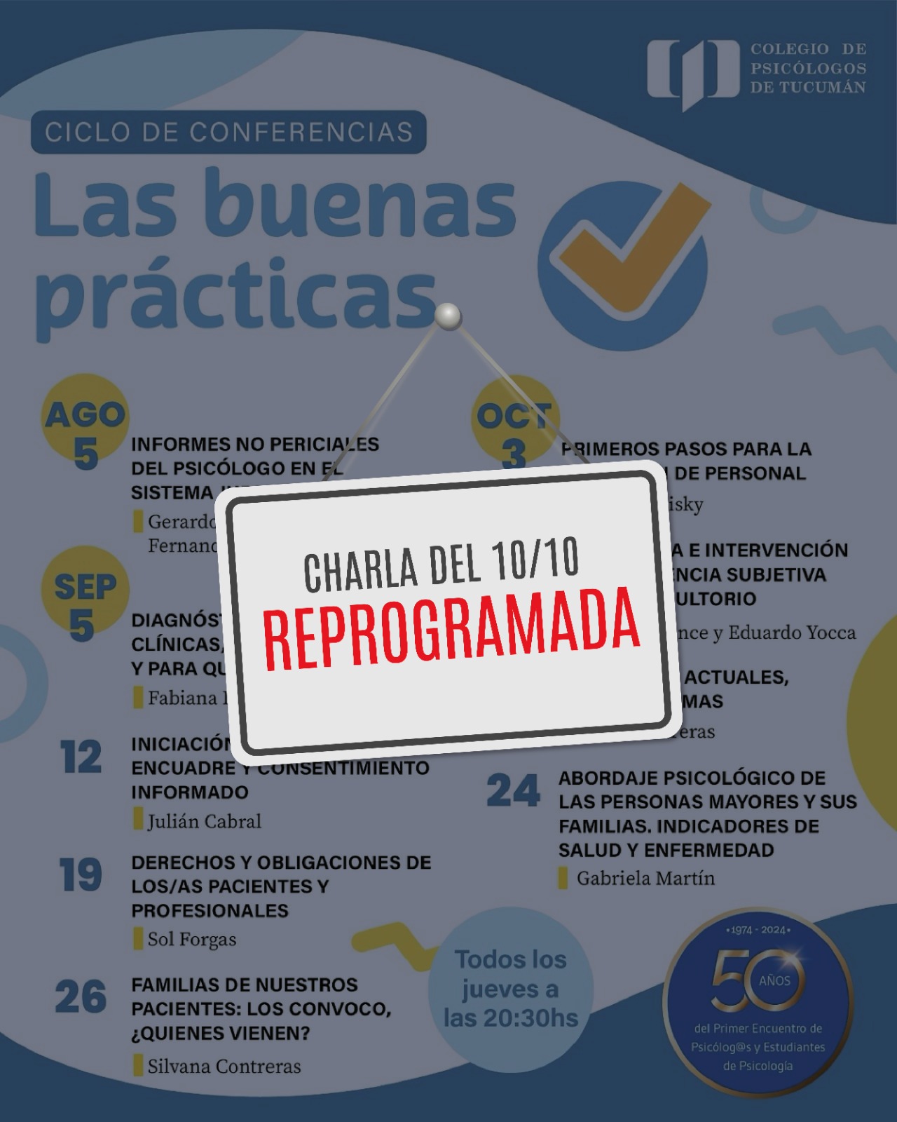 La charla programada para este jueves 10/10 fue reprogramada. Pronto confirmaremos la nueva fecha, ¡mantente atento a nuestras comunicaciones!