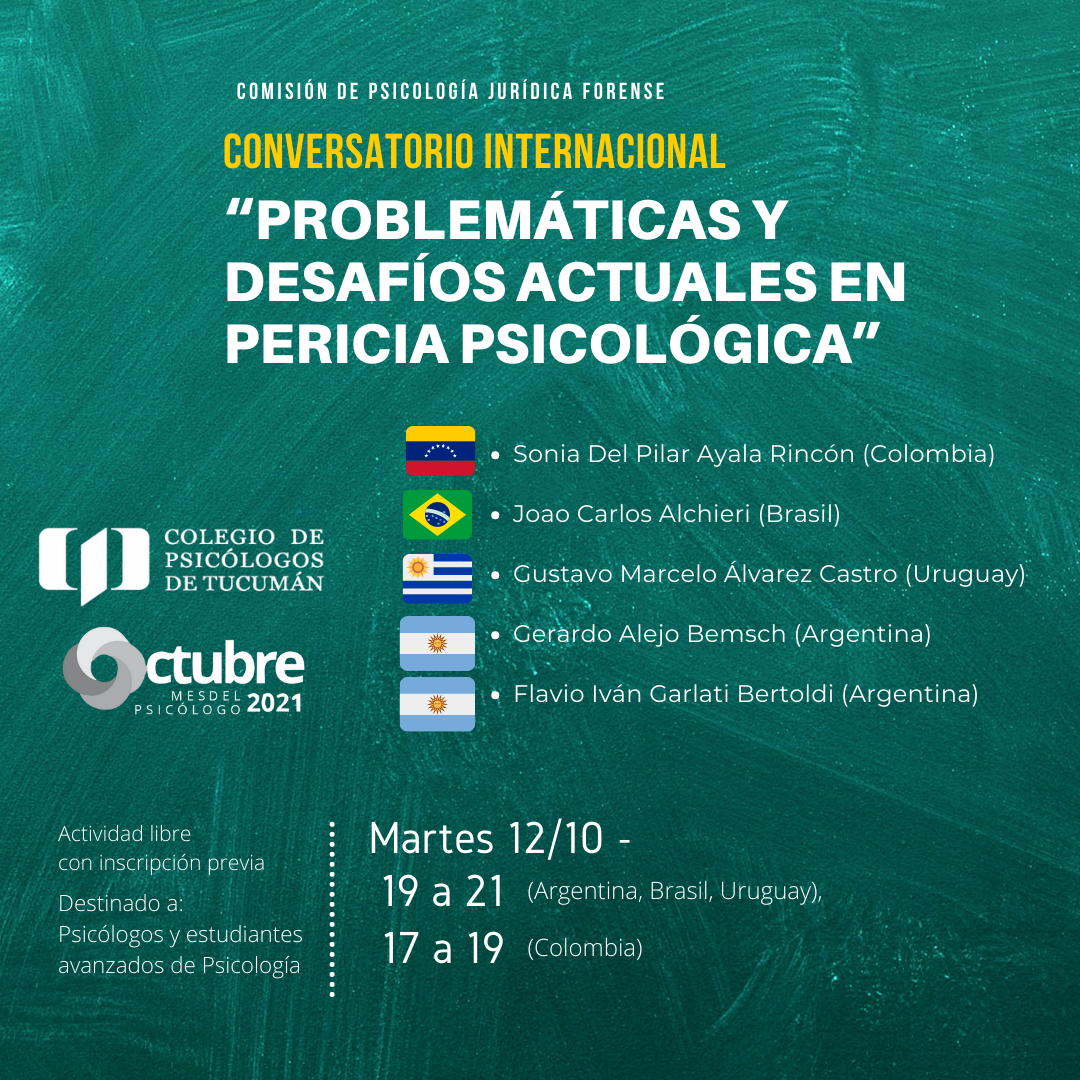 Fecha: Martes 12/10 Horario: 19 a 21 (Argentina, Brasil, Uruguay) 17 a 19 (Colombia).
