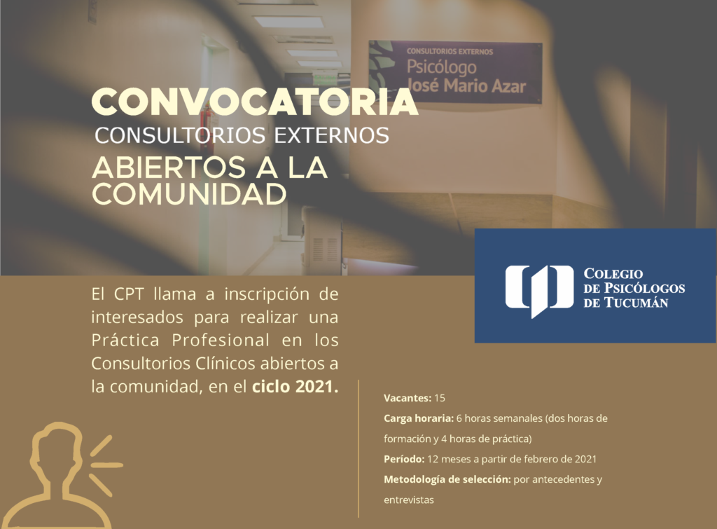 El CPT llama a inscripción de interesados para realizar una Práctica Profesional en los Consultorios Clínicos abiertos a la comunidad, en el ciclo 2021.