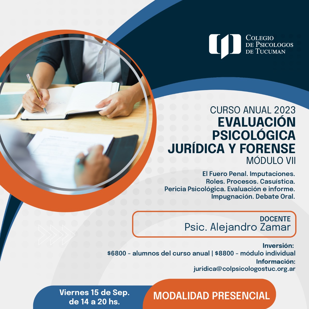 El Fuero Penal. Imputaciones. Roles. Procesos. Casuística. Pericia Psicológica. Evaluación e informe. Impugnación. Debate Oral.
