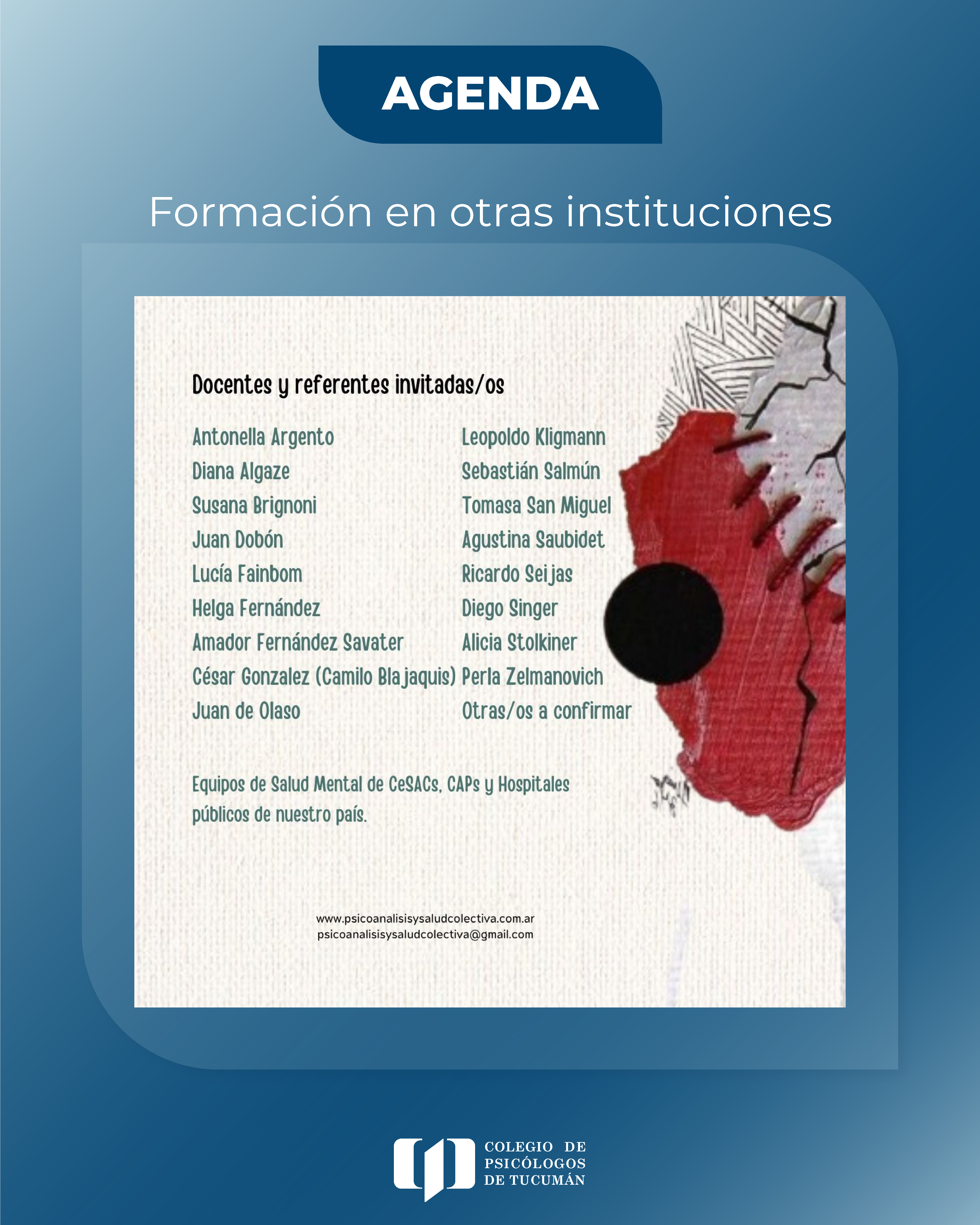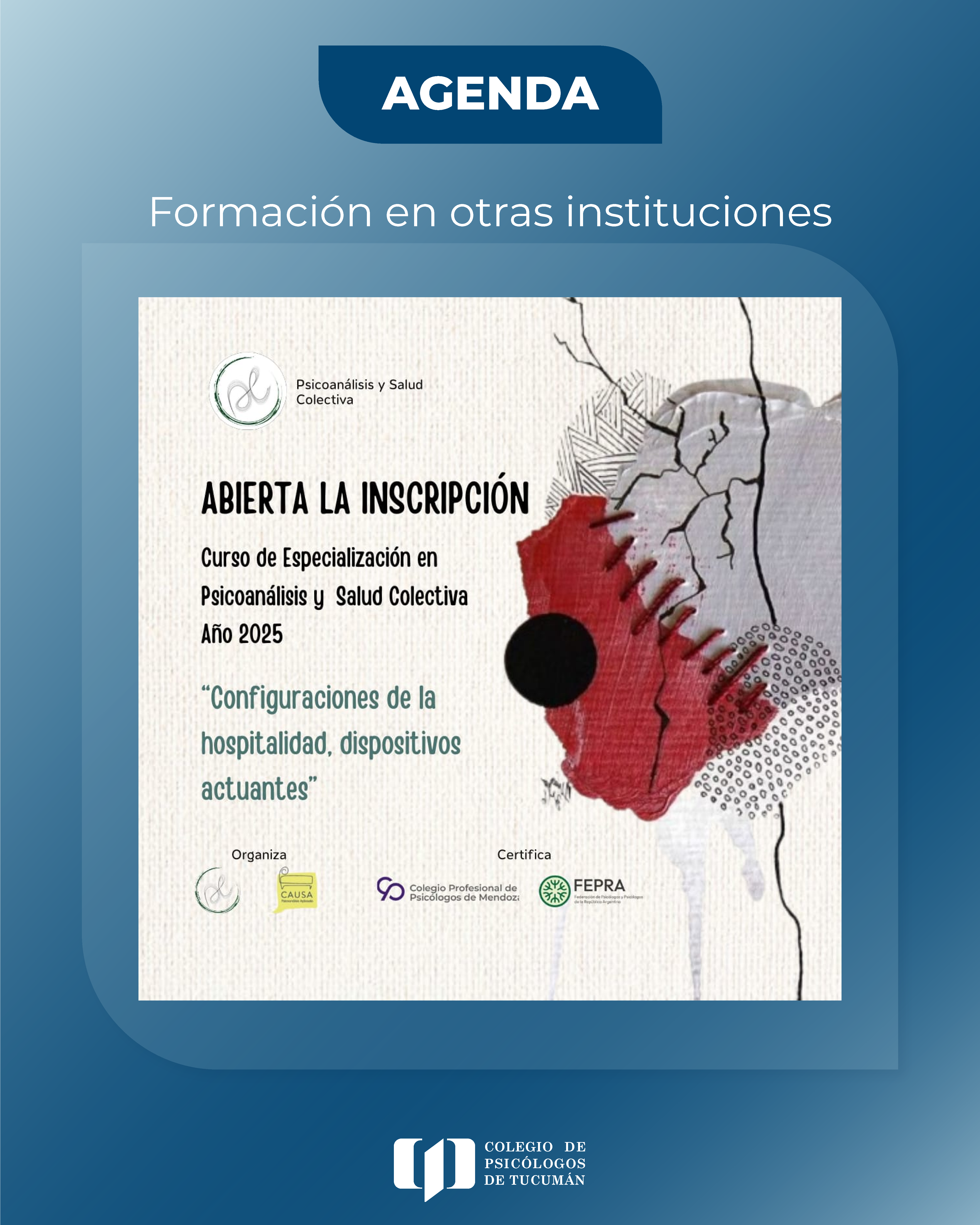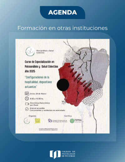 Curso de Especialización en Psicoanálisis y Salud colectiva año 2025 Mar 18, 2025 | Actividades en Otras Instituciones.