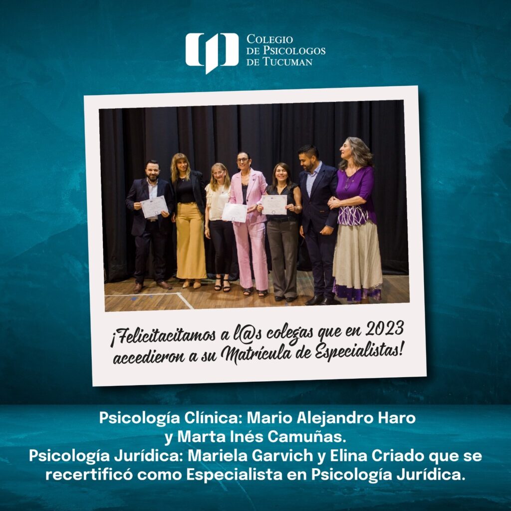 - Elina Criado se recertificó como Especialista en Psicología Jurídica.