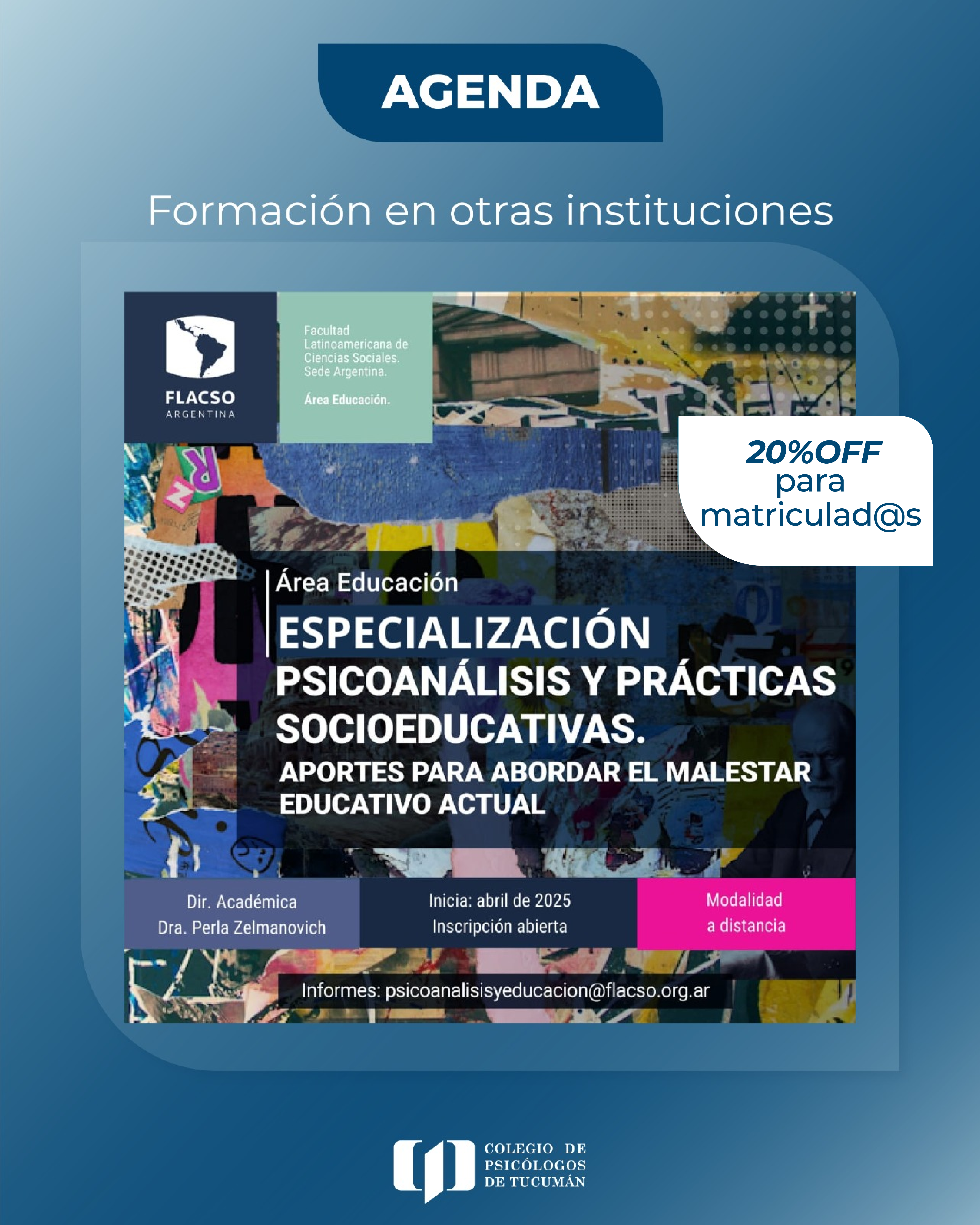 Especialización en Psicoanálisis y prácticas socio – educativas / Cohorte 17 Feb 24, 2025 | Actividades en Otras Instituciones.