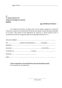 Formulario MATRICULA VITALICIA