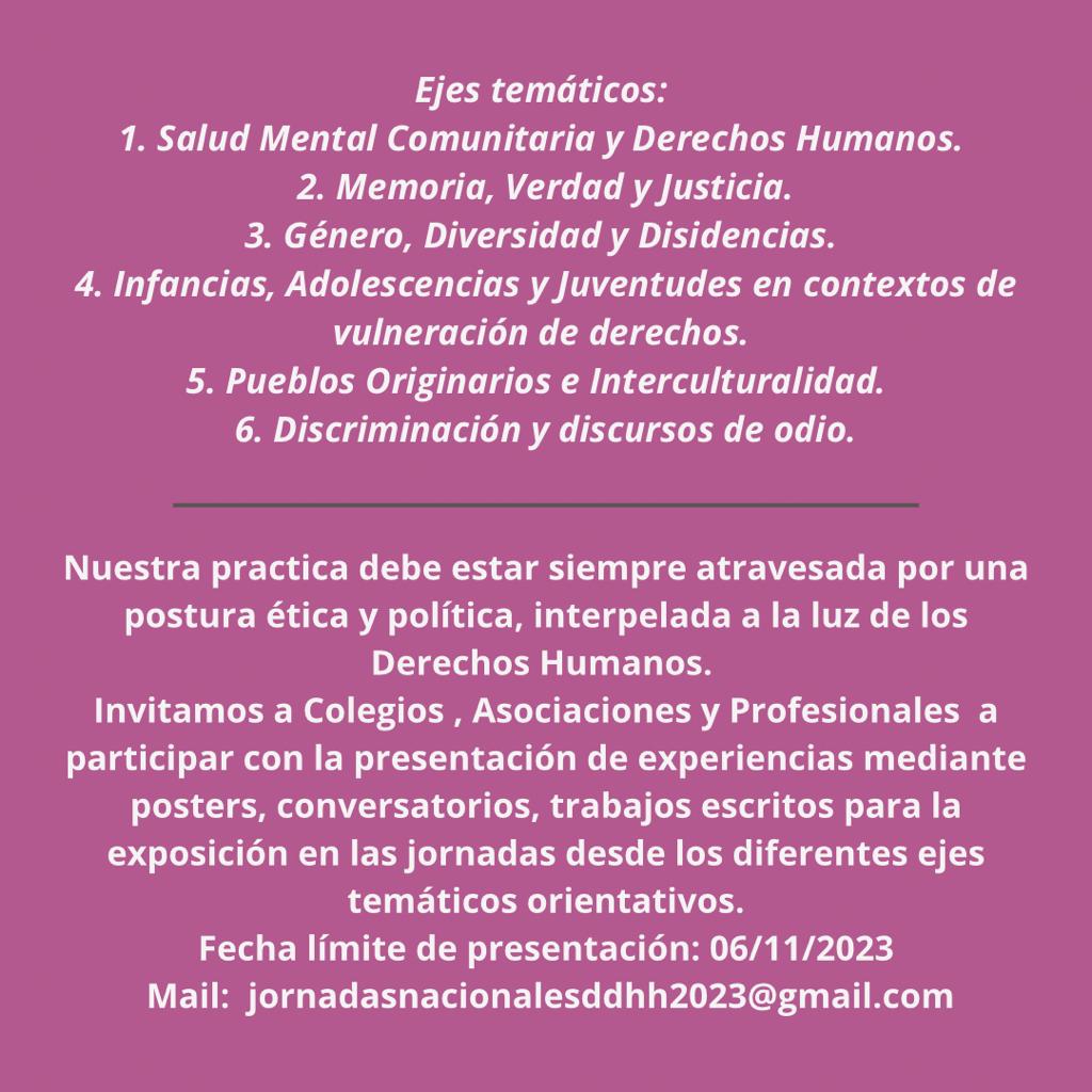 IX Jornada Nacional de Psicología y Derechos Humanos Oct 25, 2023 | Actividades en Otras Instituciones. Jornadas Nac Psicología y DDHH - Fundamentación Planilla Hospedajes Resistencia Chaco IX Jornada Nacional Psi DDHH Ampliación ejes