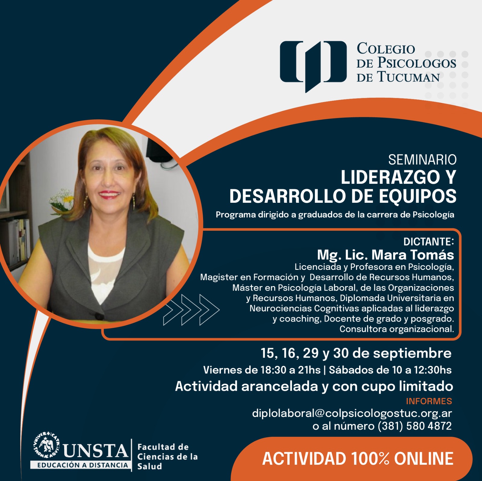 Mg. Lic. Mara Tomás. Licenciada y Profesora en Psicología (UNSTA), Magister en Formación y Desarrollo de Recursos Humanos (Universidad Internacional de Andalucía, España), Máster en Psicología Laboral, de las Organizaciones y Recursos Humanos (Universidad Jaume I, Castellón, España), Diplomada Universitaria en Neurociencias Cognitivas aplicadas al liderazgo y coaching (UNSTA, FAE y FCN), docente de grado y posgrado. Consultora organizacional.