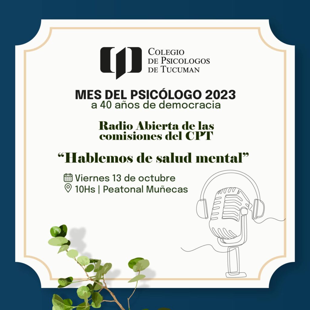 Los invitamos a participar de la Radio Abierta «Hablemos de Salud Mental», a cargo de las comisiones del Colegio de Psicólogos de Tucumán.