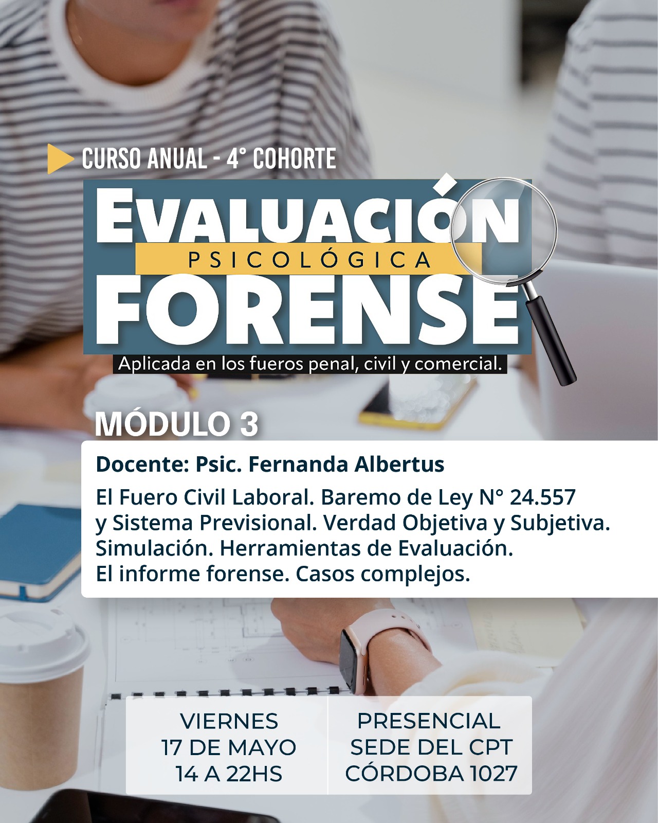 Viernes 17 de MAYO. De 14 a 22 hs. Modalidad: presencial (Sede CPT, Córdoba 1027)
