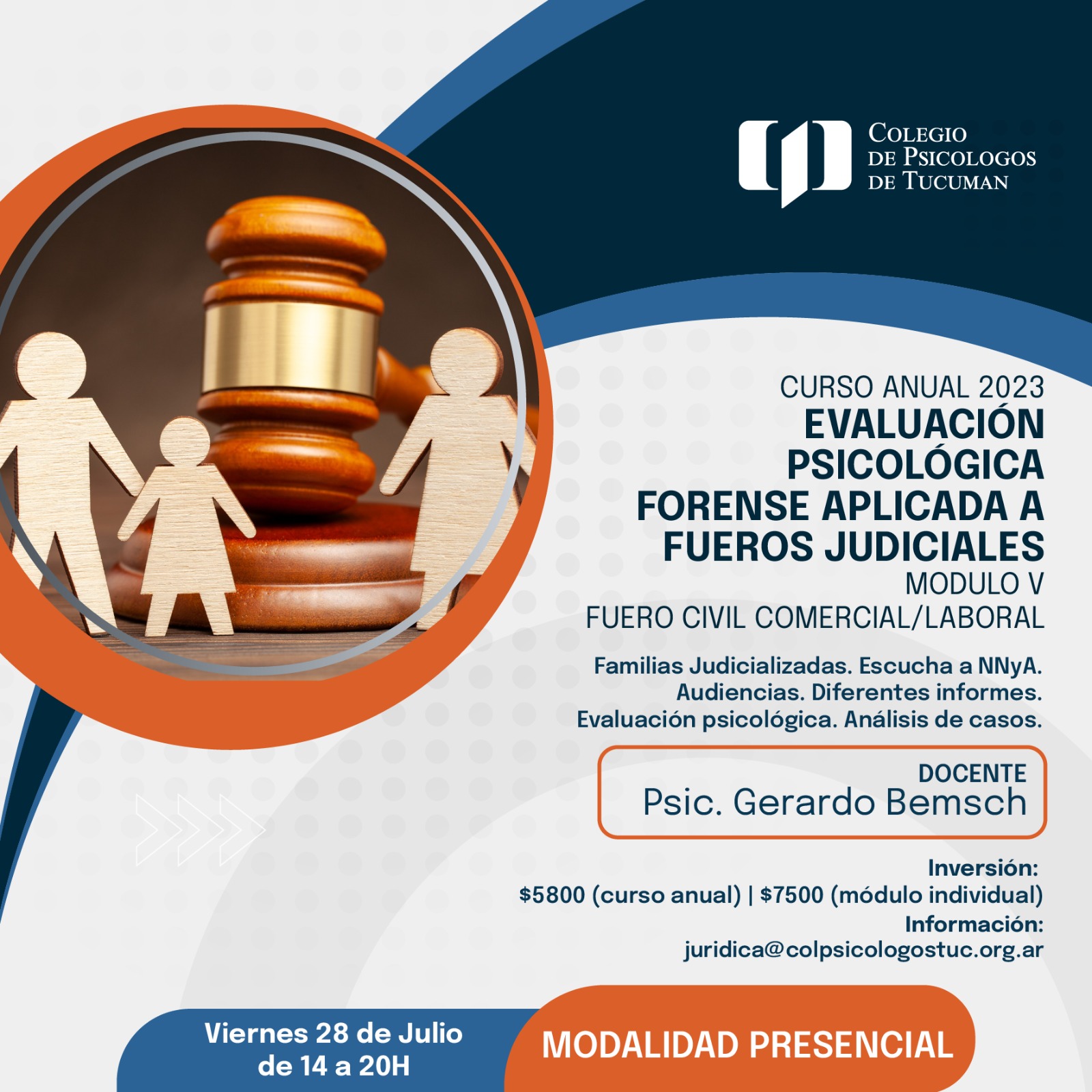 viernes 28 de julio de 2023 a las 14:00 a 20:00 Hs Modalidad Presencial