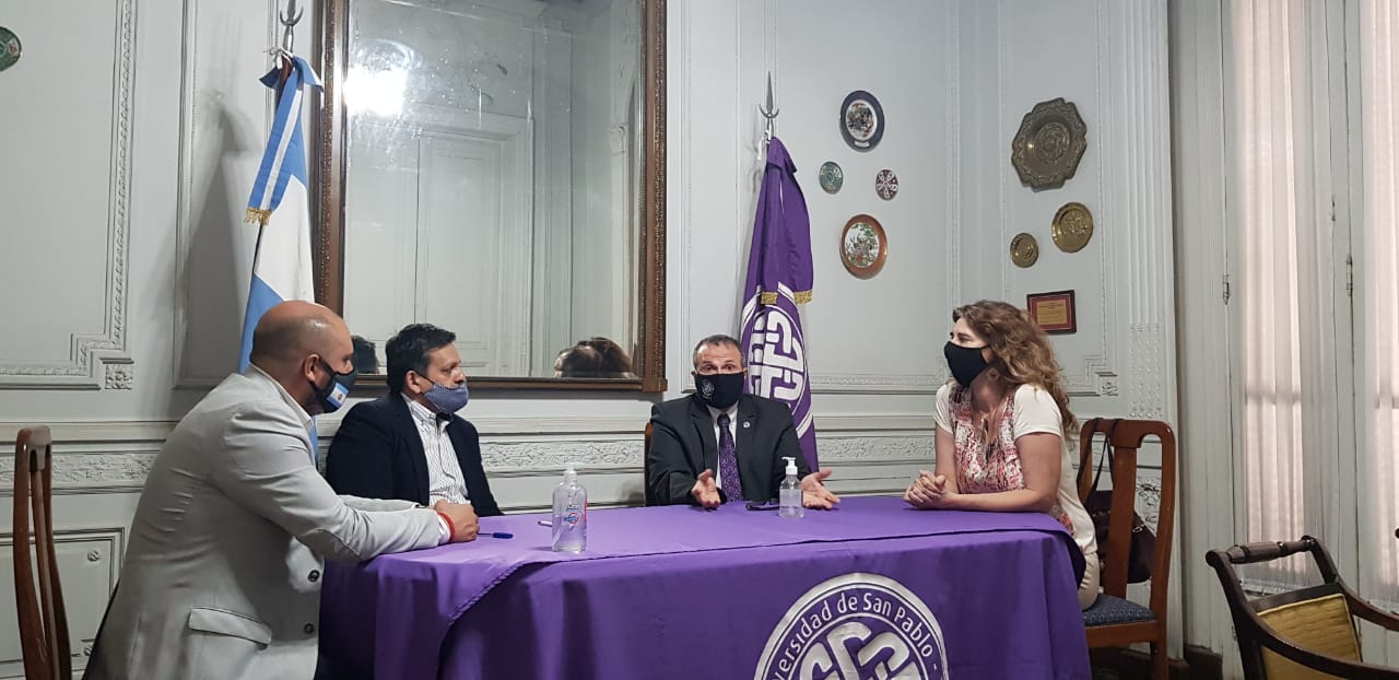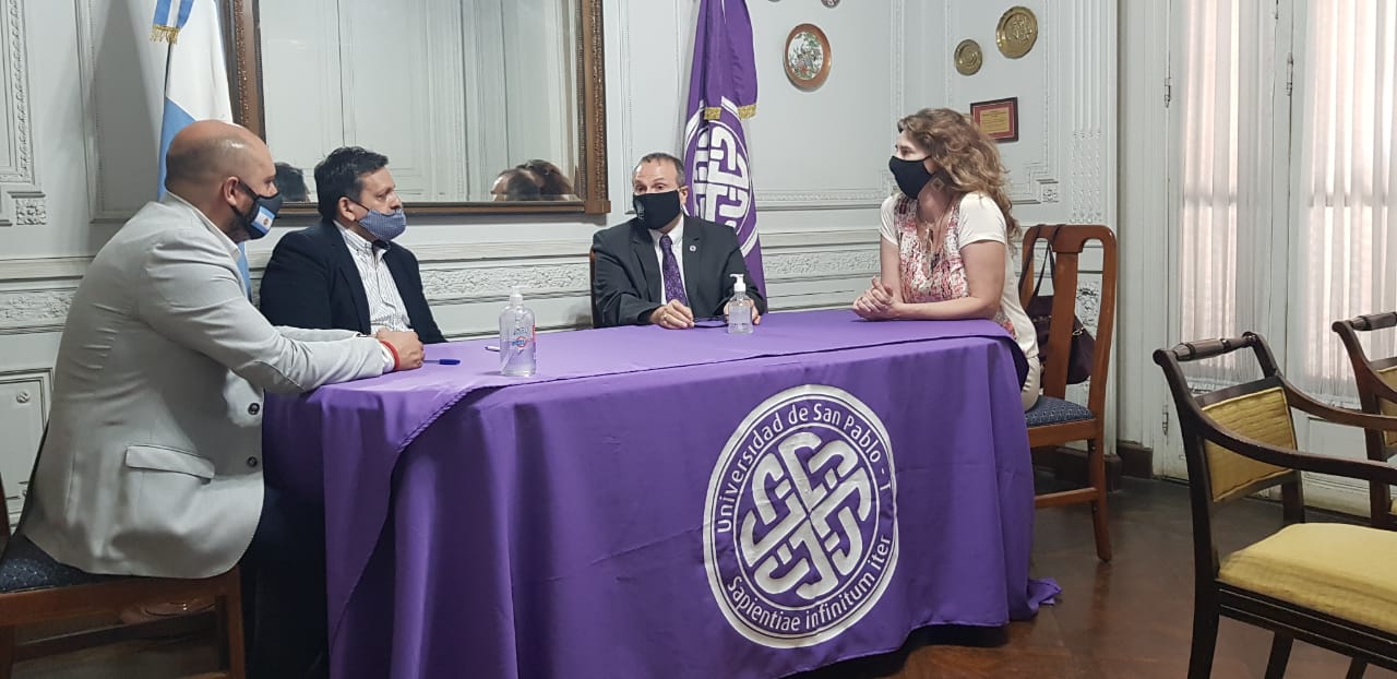 El Colegio de Psicólogos de Tucumán, con la representación de su Presidente Roberto González Marquetti y su vicepresidenta Fabiana Lávaque, firmó un convenio con la Universidad San Pablo T, para el dictado de capacitaciones académicas entre ambas instituciones. Participaron de la firma los representantes del CPT, el Rector de USP- T, Dr. Ramiro Albarracín, y el Psi Lucas Hourigot Posse, director de diplomaturas.
