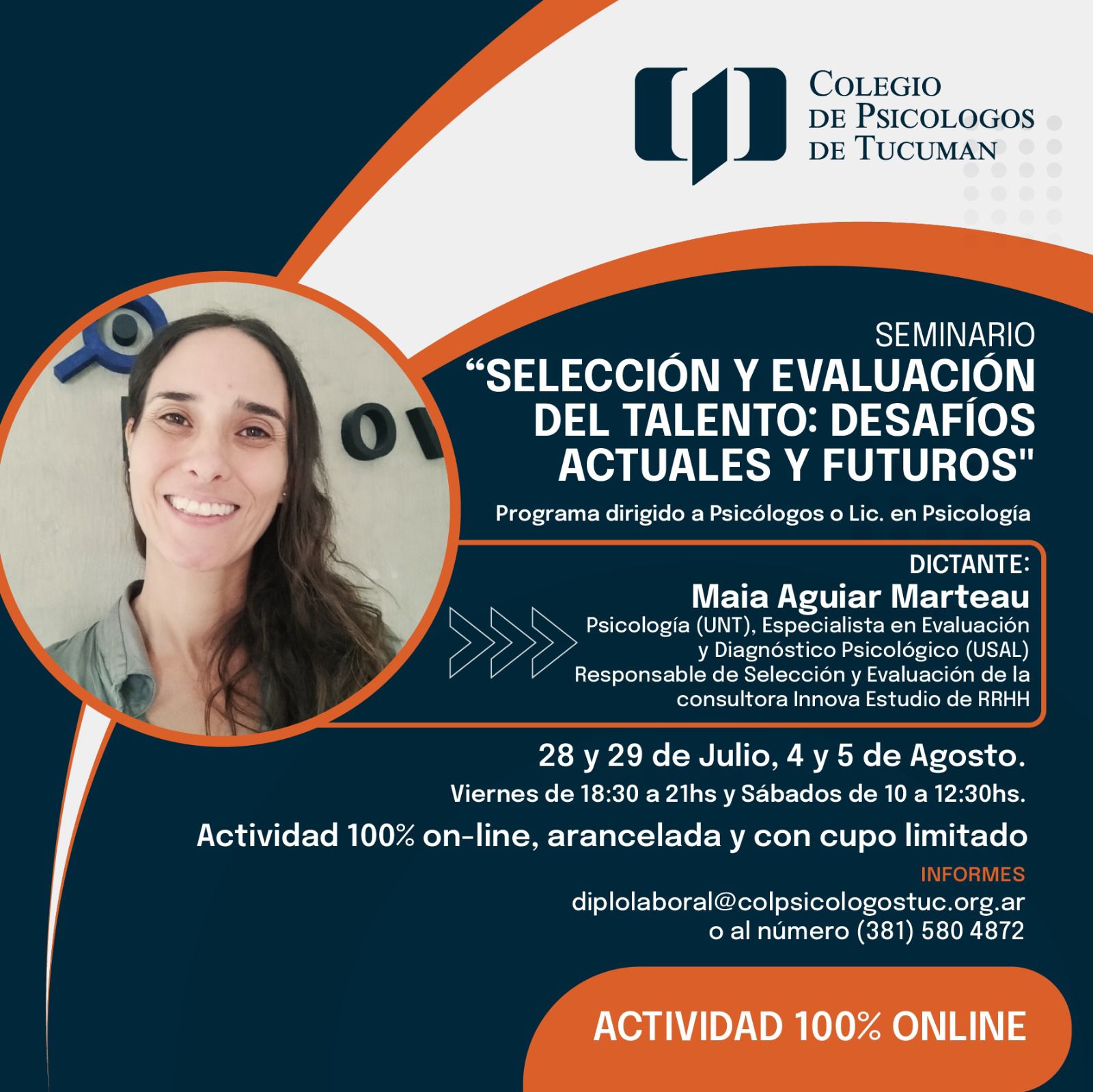 Maia Aguiar Marteau - Psicología (UNT), Especialista en Evaluación y Diagnóstico Psicológico (USAL) - Responsable de Selección y Evaluación de la consultora Innova Estudio de RRHH