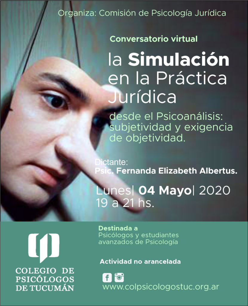 Actividad no arancelada. Destinada a Psicólogos y estudiantes avanzados de Psicología. Fecha: LUNES 04 de Mayo de 19 a 21 hs.