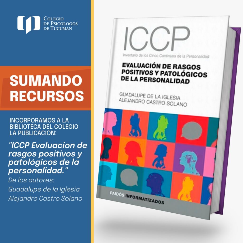 Sumamos recursos para la formación y el ejercicio profesional Dic 20, 2023 | Noticias En nuestra Biblioteca ya pueden encontrar la publicación: «ICCP Evaluación de rasgos positivos y patológicos de la personalidad» de Guadalupe de la Iglesia y Alejandro Castro Solano
