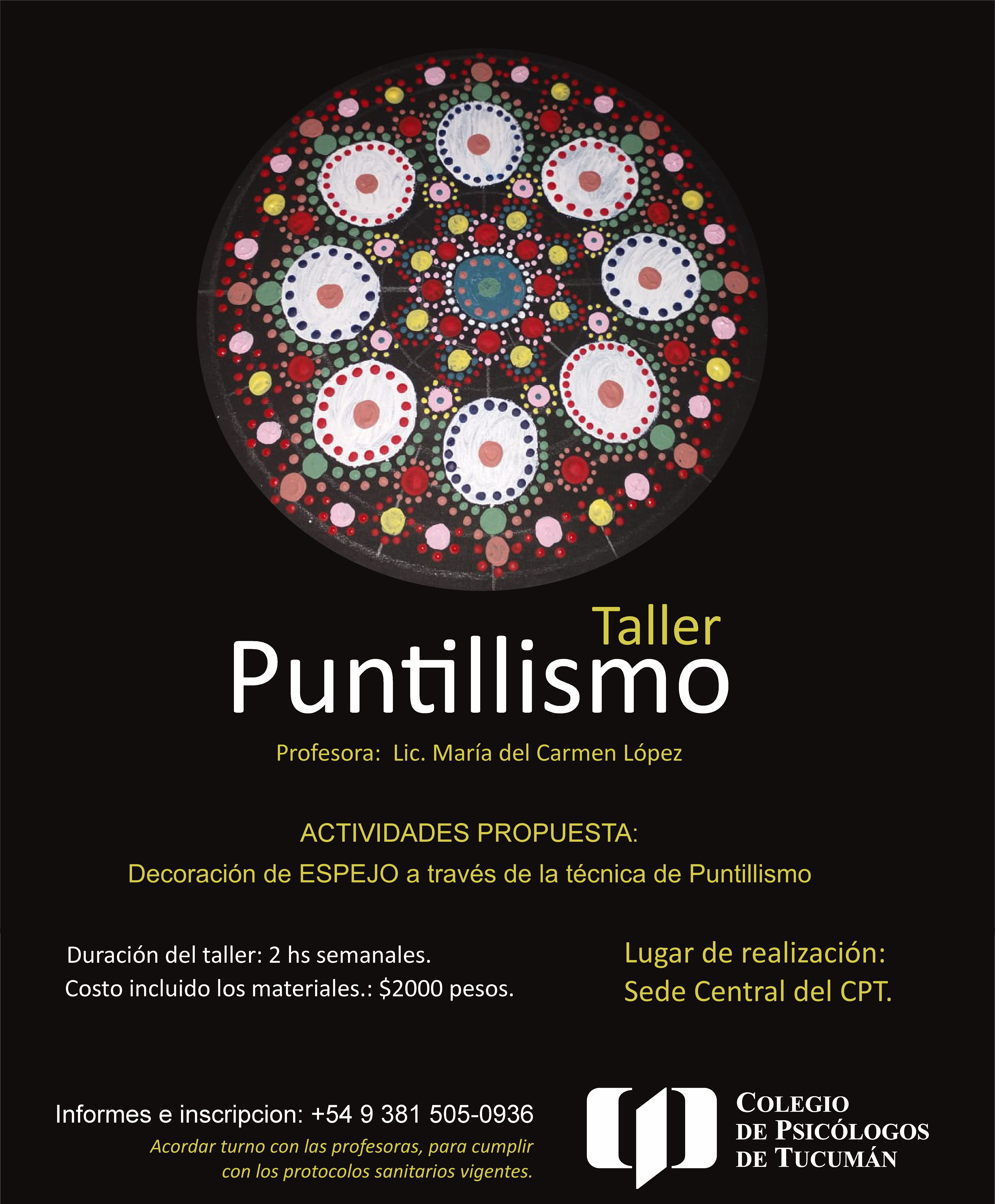 Lugar de realización: Sede Central del CPT. Acordar turno con las profesoras, para cumplir con los protocolos sanitarios vigentes. Profesora: Lic. María del Carmen López