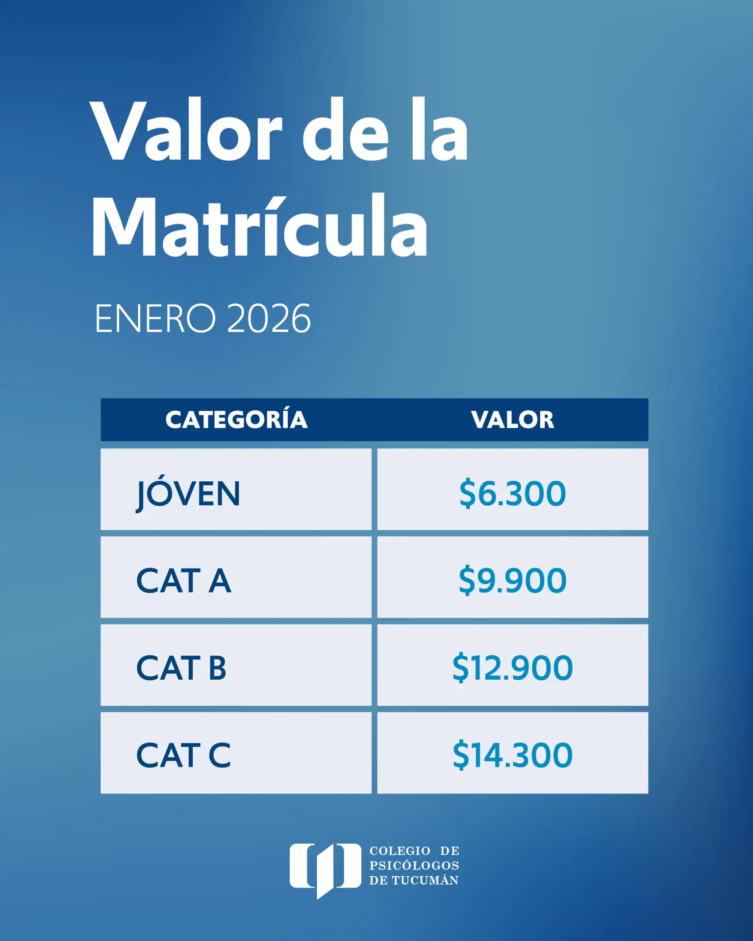 Valor de la Matricula Enero 2026
